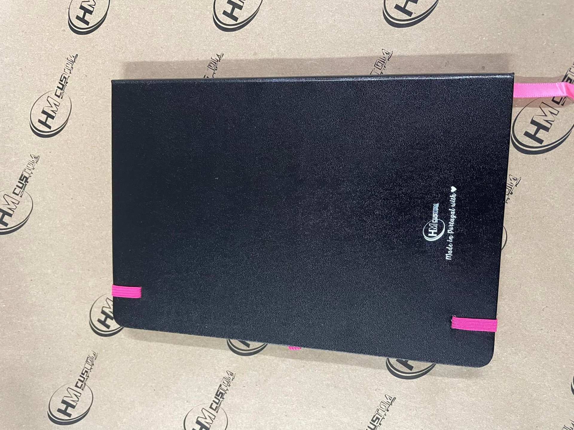 Com uma capa preta, dá aso ao destaque do elástico, fitilho e porta-canetas colorido.