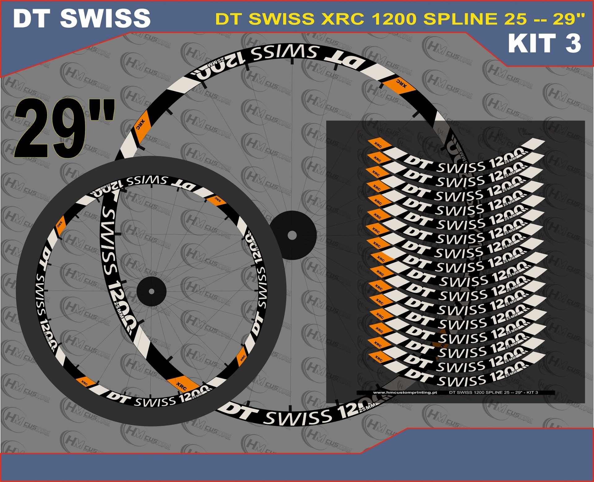 Kit autocolantes DT SWISS XRC 1200 SPLINE para roda 29" - Rebordo Aro 25MM